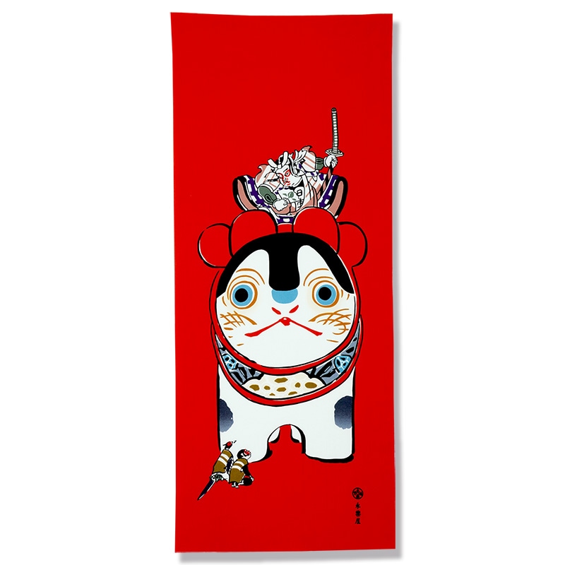 手ぬぐい「私は昔「モモタロウ」と云われてました 赤」